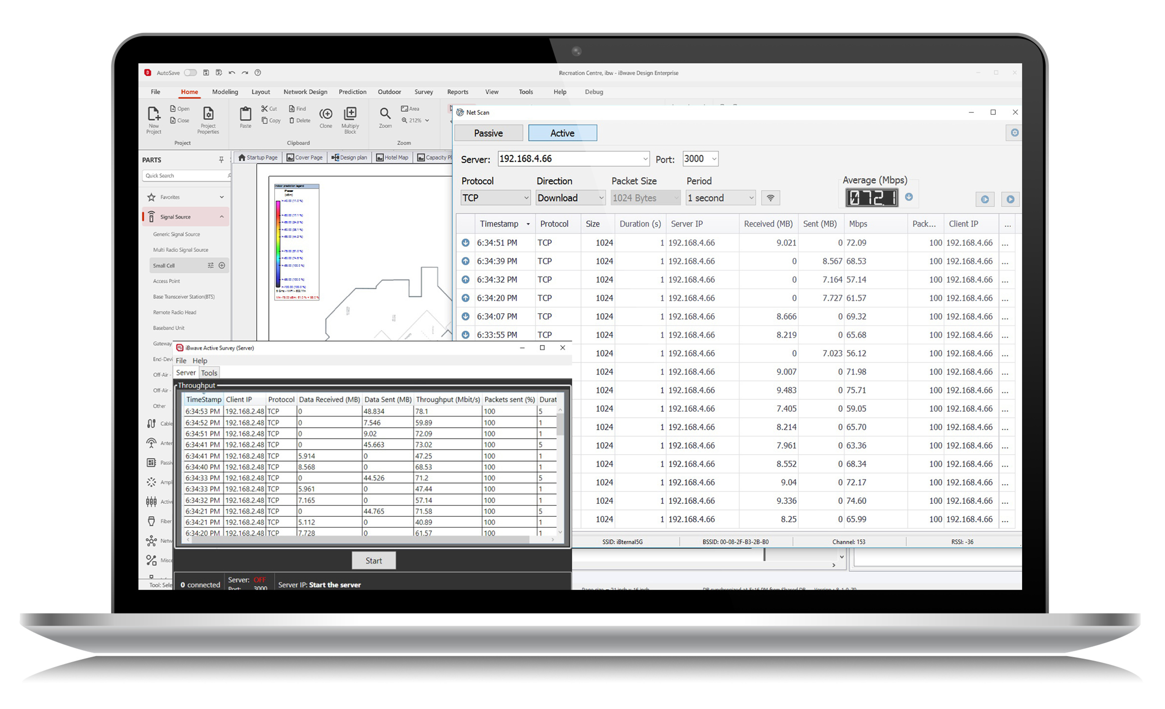 - Active Surveys with an integrated server. Assess a network’s performance without using iPerf or another third-party tool. Simply launch the ‘Active Survey’ server from your desktop and then survey with either the mobile app or PC version.