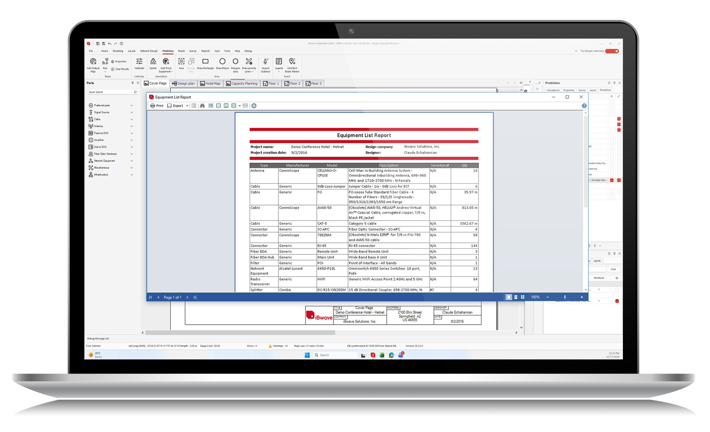 - A Complete Bill of Materials. With the ability to design your entire network with APs, cabling and network equipment, you can quickly generate an accurate Bill of Materials for your customer.
