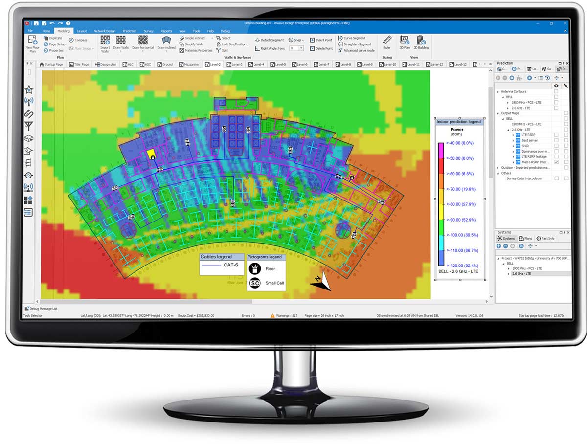 With iBwave Design, your network project lifecycle is streamlined so you can design and deliver wireless networks smarter and faster than ever before. Import floor plans, design using a database of over 40,000 parts, simulate your network in advanced 3D for both coverage and capacity, and easily produce key project reports.